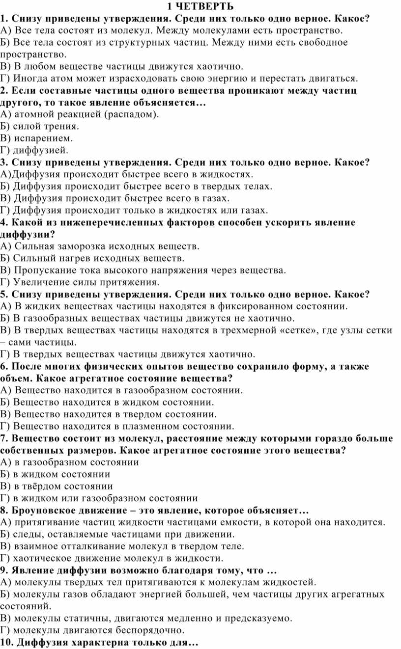 1. Снизу приведены утверждения. Среди них только одно верное. Какое?