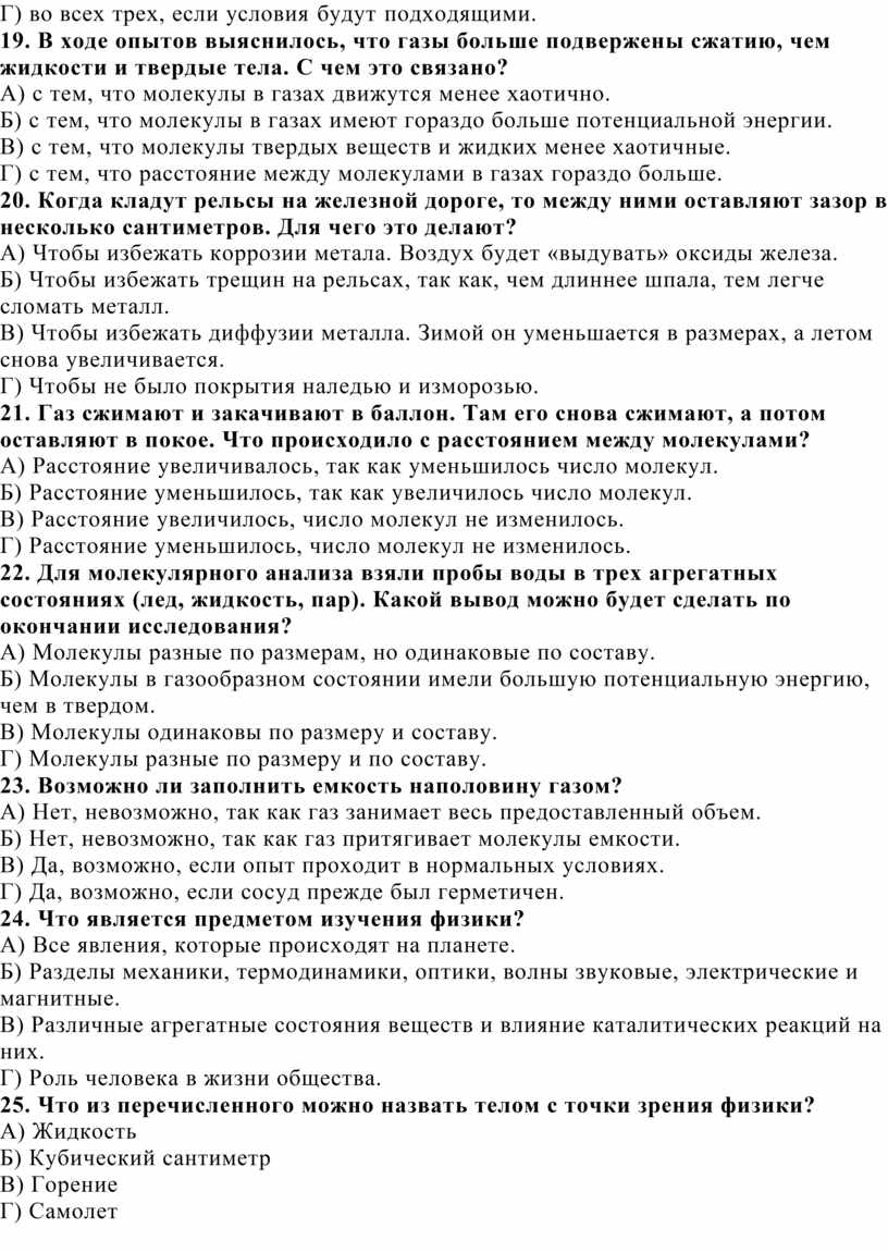 21. Газ сжимают и закачивают в баллон. Там его снова сжимают, а потом оставляют в покое. Что происходило с расстоянием между молекулами?