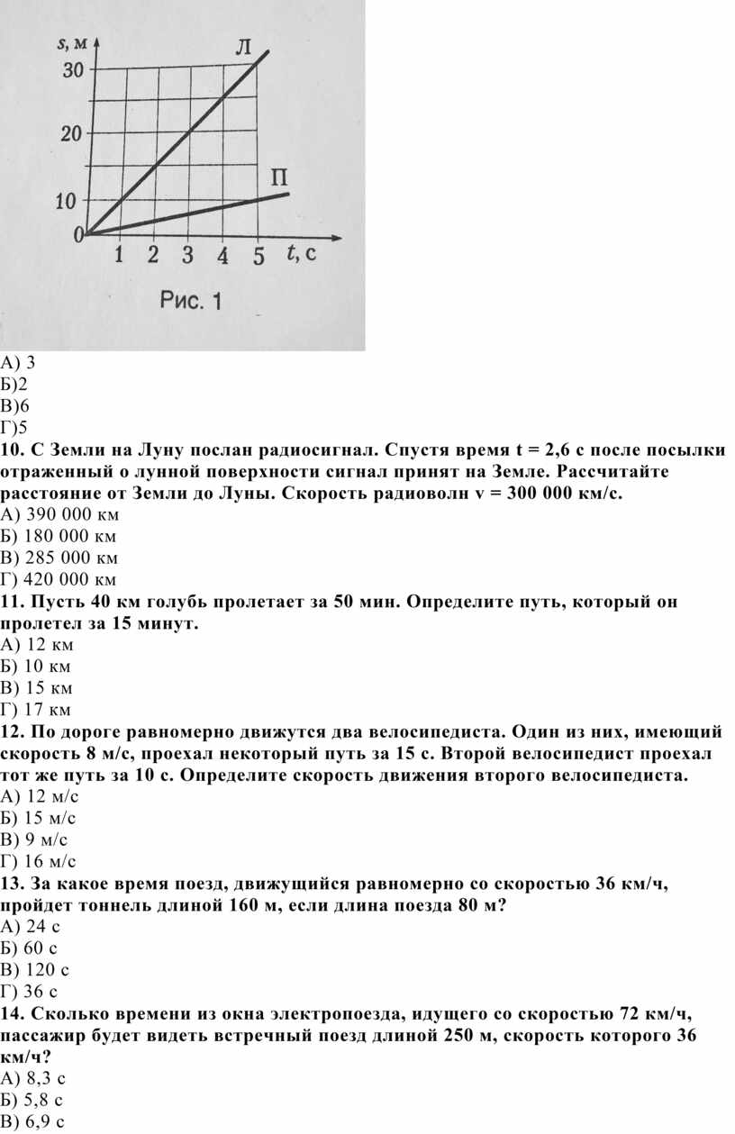 10. С Земли на Луну послан радиосигнал. Спустя время t = 2,6 с после посылки отраженный о лунной поверхности сигнал принят на Земле. Рассчитайте расстояние от Земли до Луны. Скорость радиоволн v = 300 000 км/с.