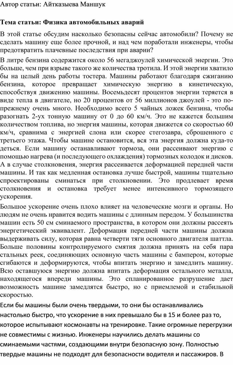Если бы машины были очень твердыми, то они бы останавливались настолько быстро, что ускорение в них превышало бы в 15 и более раз то, которое испытывают космонавты на тренировке. Такие огромные перегрузки не совместимы с жизнью. Инженеры научились делать машины со сминаемыми частями, создающими внутри безопасную зону. Полностью твердые машины не подходят для безопасности водителя и пассажиров. В полностью твердых машинах даже при столкновении на совсем небольшой скорости (30 - 40 км/ч) могли бы погибать люди.