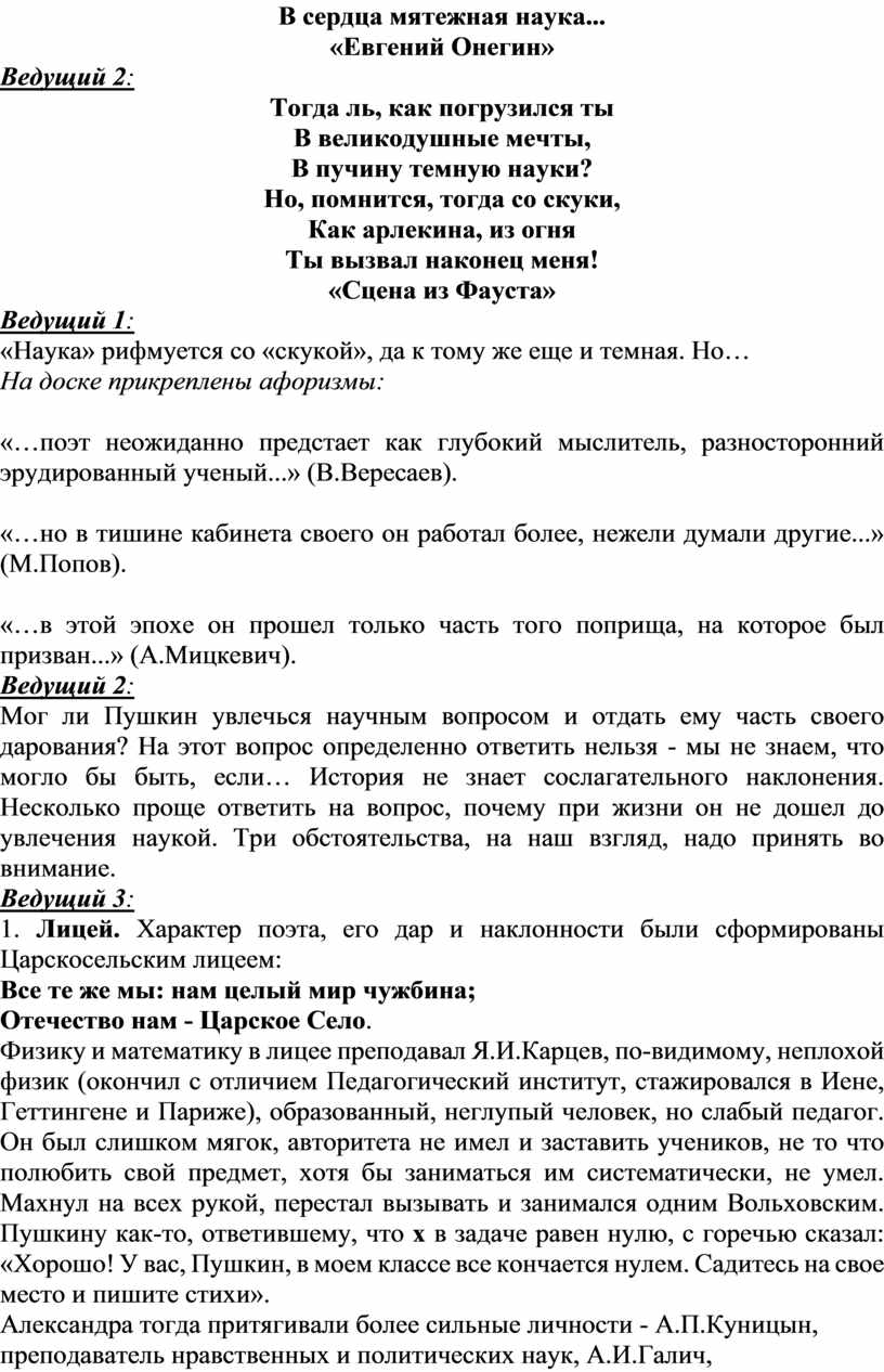 Физика имеет и другое, общепринятое в наше время, значение – наука о фундаментальных свойствах вещества, один из краеугольных камней современного знания и мировоззрения. С такой физикой (на уровне начала прошлого века) Александр Пушкин должен был знакомиться в лицее, но, увы, глубоких познаний не приобрел. Французский язык и изящная словесность более занимали его тогда. По стечению обстоятельств (литературные кружки, знакомство с людьми определенного круга, ссылка, личные увлечения) он оставался в стороне от научных проблем вплоть до роковых 30-х годов.