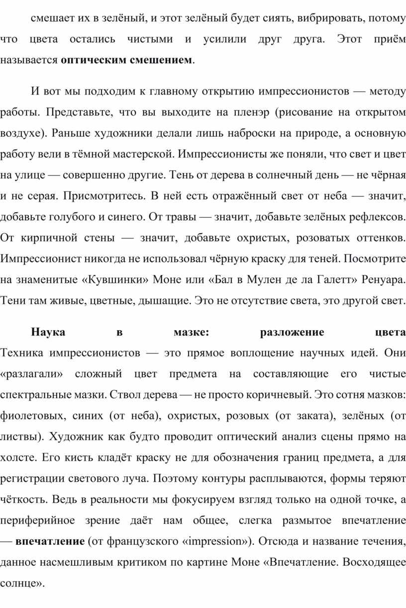 Техника импрессионистов — это прямое воплощение научных идей. Они «разлагали»