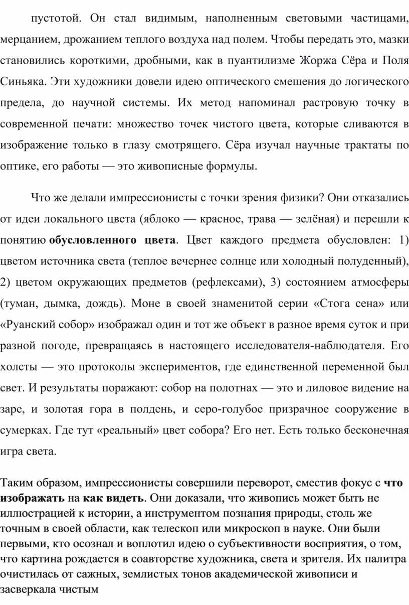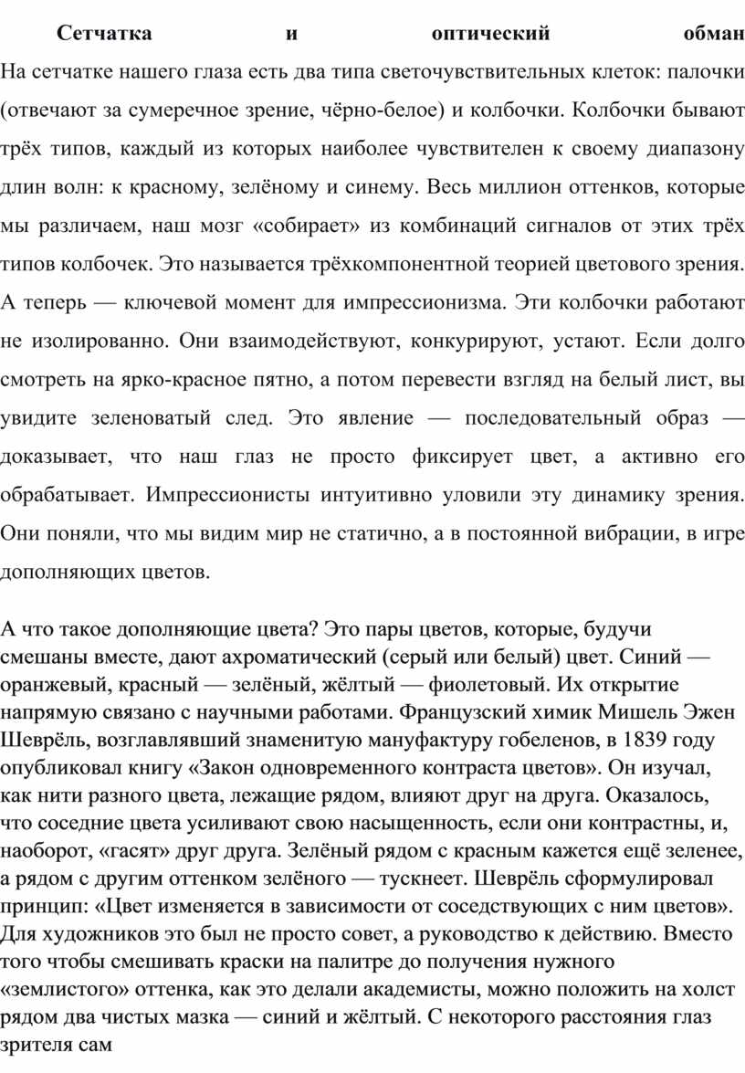 цвет, а активно его обрабатывает. Импрессионисты интуитивно уловили эту