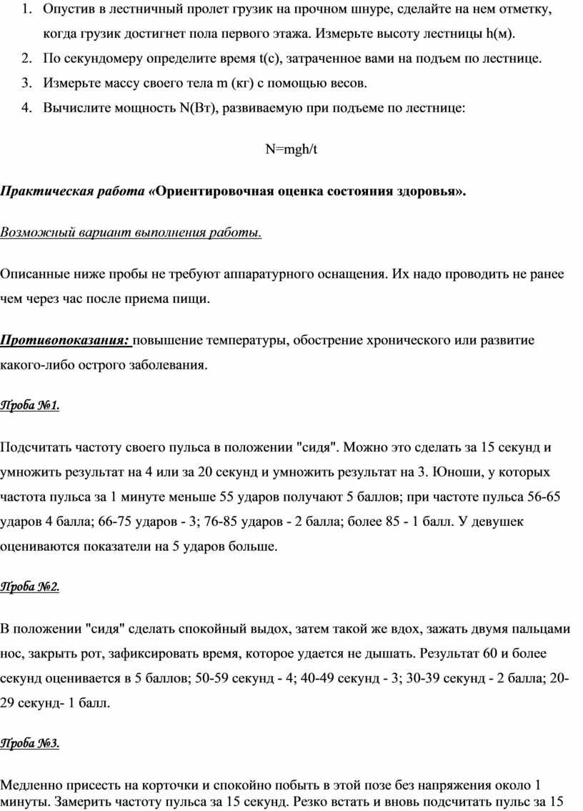 Практическая работа «Ориентировочная оценка состояния здоровья».