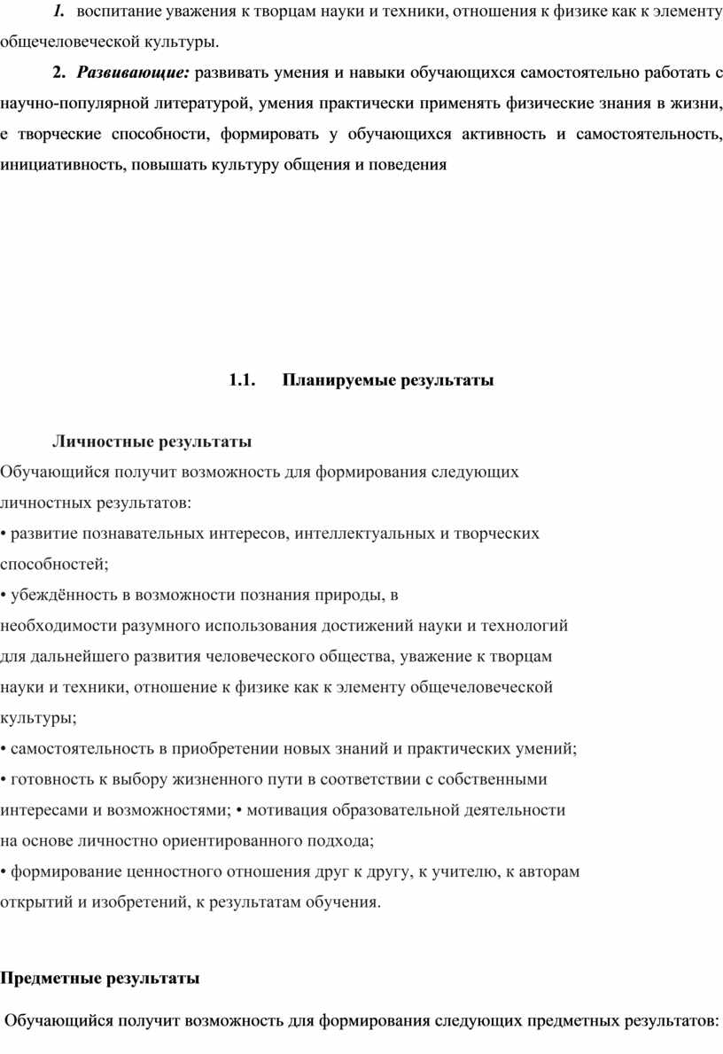 3. Развивающие: развивать умения и навыки обучающихся самостоятельно работать с научно-популярной литературой, умения практически применять физические знания в жизни, е творческие способности, формировать у обучающихся активность и самостоятельность, инициативность, повышать культуру общения и поведения