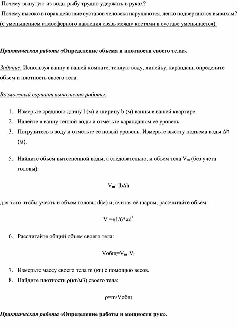 8. Найдите плотность ρ(кг/м3) своего тела: