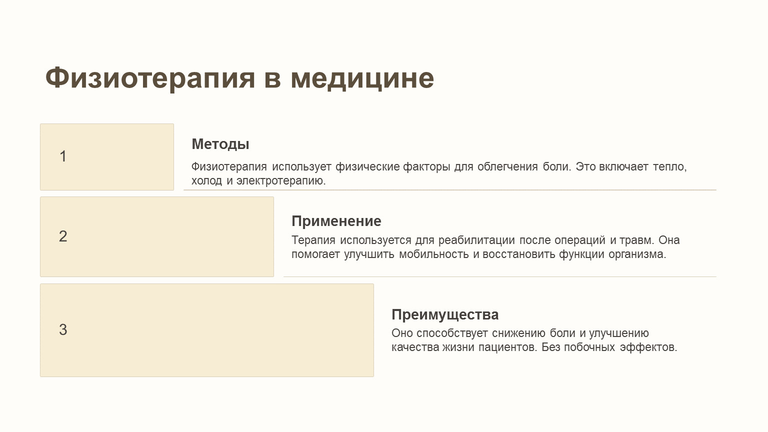 Терапия используется для реабилитации после операций и травм. Она помогает улучшить мобильность и восстановить функции организма.