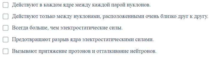 Учящиеся должны знать, что ядерные силы · сущестуют только между соседними ядрами; · от заряда нуклона независим · сильная сила · будет действовать только на очень короткий интервал |