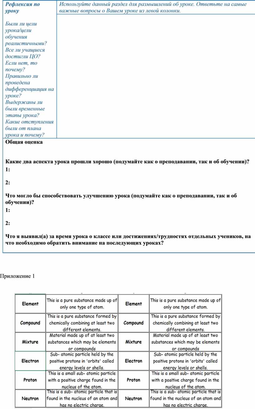 Используйте данный раздел для размышлений об уроке. Ответьте на самые важные вопросы о Вашем уроке из левой колонки. |