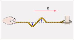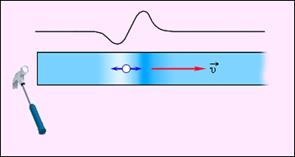 Рисунок 1. Распространение поперечного волнового импульса по натянутому резиновому жгуту Если смещение частиц среды происходит в направлении распространения волны, то волна называется продольной. Волны в упругом стержне (рисунок 2) или звуковые волны в газе являются примерами таких волн.