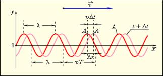 Длиной волны λ называют расстояние между двумя соседними точками на оси OX, колеблющимися в одинаковых фазах. Расстояние, равное длине волны λ, волна пробегает за период Т, следовательно, λ = υT, где υ – скорость распространения волны.