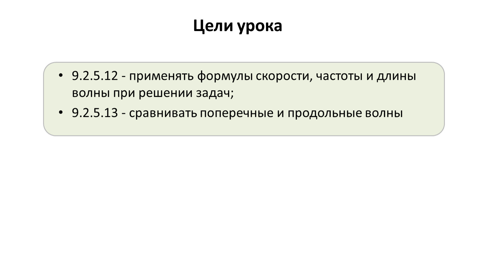 9.2.5.12 - применять формулы скорости, частоты и длины волны при решении задач;