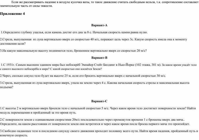 а) от массы б) от силы тяжести в) от сопротивления воздуха г) от всего вышеперечисленного