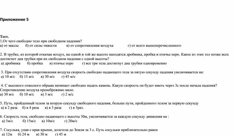 3. При отсутствии сопротивления воздуха скорость свободно падающего тела за пятую секунду падения увеличивается на: