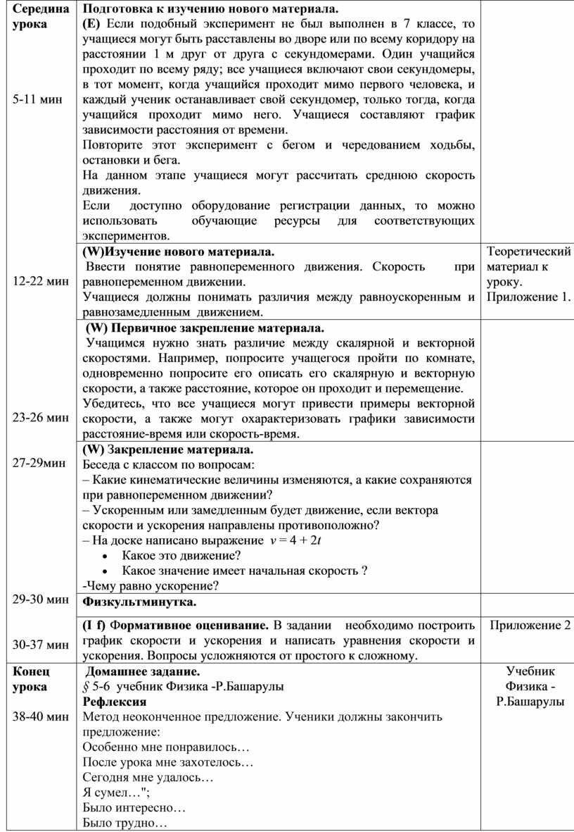 Учащиеся: Знание Знает физический смысл понятий: скалярная и векторная скорость, ускорение Знает единицы измерения скорости и ускорения в Международной системе СИ Понимание Понимает различие между равномерным и равнопеременным движениями Применение Определяет скорость в любой момент времени. Умеет использовать полученные знания для решения задач. |