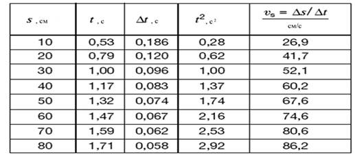 Это хорошо согласуется с формулами v=at и S=at2/2 для равноускоренного движения без начальной скорости.