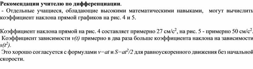 - Отдельные учащиеся, обладающие высокими математическими навыками, могут вычислить коэффициент наклона прямой графиков на рис. 4 и 5.
