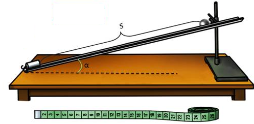 3. Не изменяя угол наклона желоба к горизонту (α), и, производя небольшие передвижения цилиндра, добивайтесь того, чтобы время скатывания шарика по желобу оставалось одним и тем же.