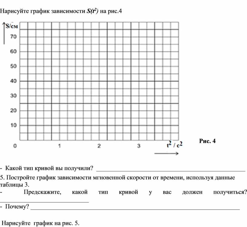 4. Используя значения для S и t2 , постройте график зависимости пройденного пути от