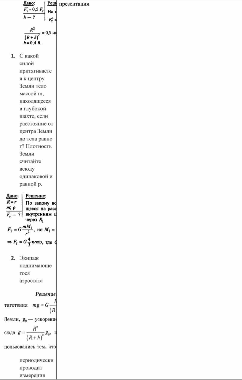 4. С какой силой притягивается к центру Земли тело массой m, находящееся в глубокой шахте, если расстояние от центра Земли до тела равно г? Плотность Земли считайте всюду одинаковой и равной р.