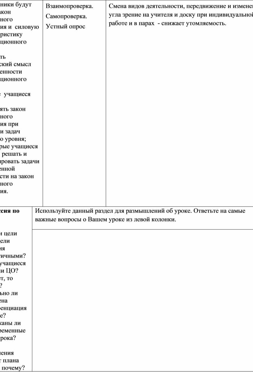 Используйте данный раздел для размышлений об уроке. Ответьте на самые важные вопросы о Вашем уроке из левой колонки. |