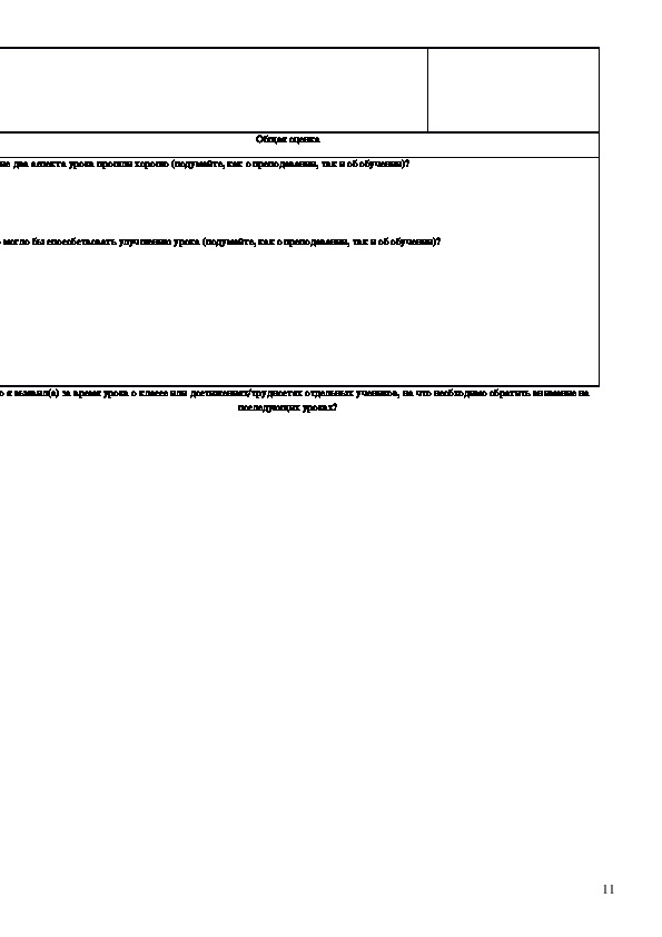 Что я выявил(а) за время урока о классе или достижениях/трудностях отдельных учеников, на что необходимо обратить внимание на