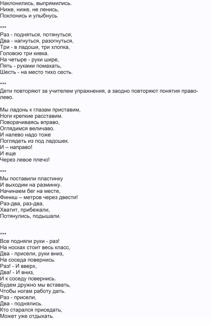 Учителю важно помнить, что упражнения и сопутствующее стихотворение нужно периодически менять.