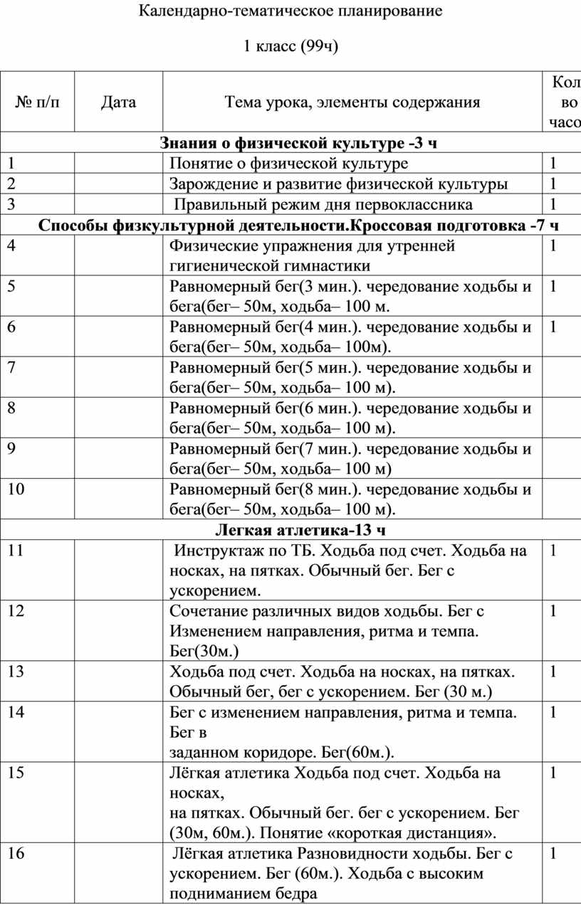 Лёгкая атлетика Ходьба под счет. Ходьба на носках, на пятках. Обычный бег. бег с ускорением. Бег (30м, 60м.). Понятие «короткая дистанция». |