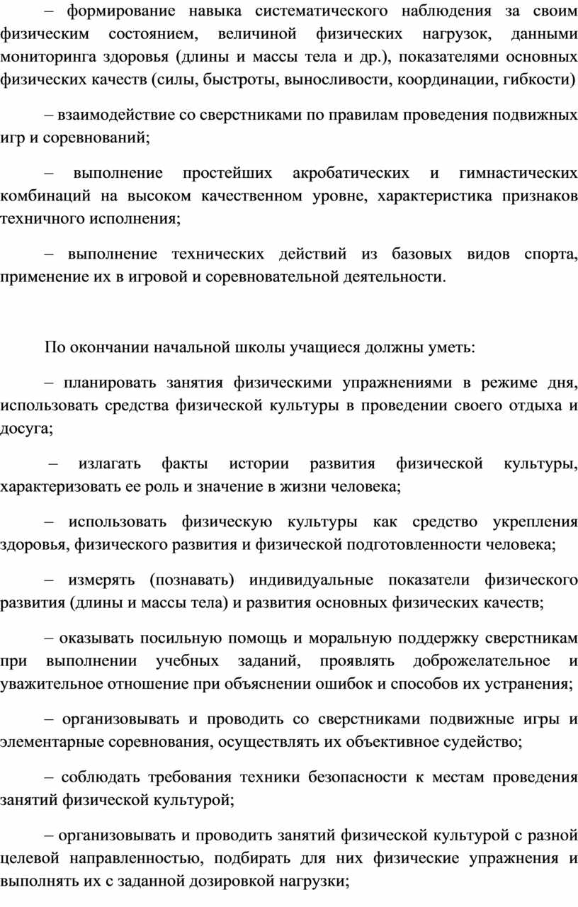 – формирование навыка систематического наблюдения за своим физическим состоянием, величиной физических нагрузок, данными мониторинга здоровья (длины и массы тела и др.), показателями основных физических качеств (силы, быстроты, выносливости, координации, гибкости)