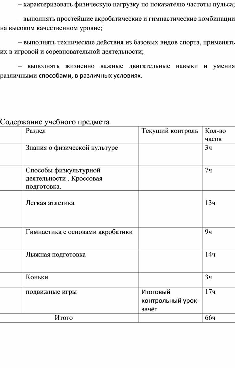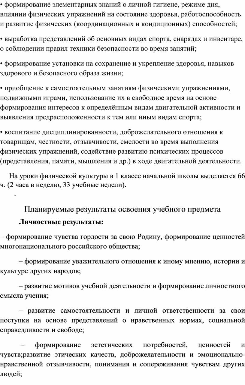 На уроки физической культуры в 1 классе начальной школы выделяется 66 ч. (2 часа в неделю, 33 учебные недели).