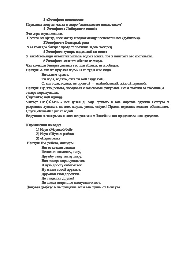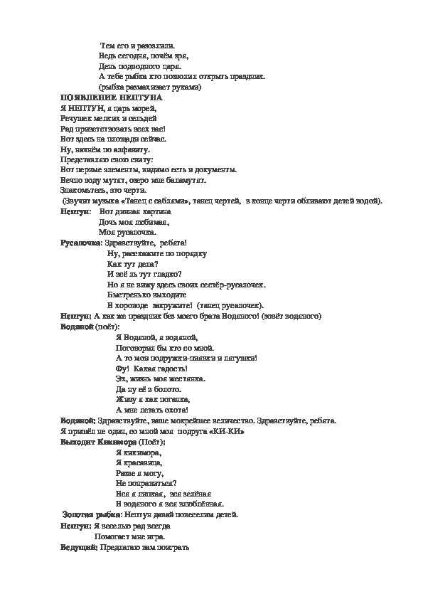 Читает ПИСКАРЬ: «Всех детей д. сада принять в моё морское царство Нептуна и