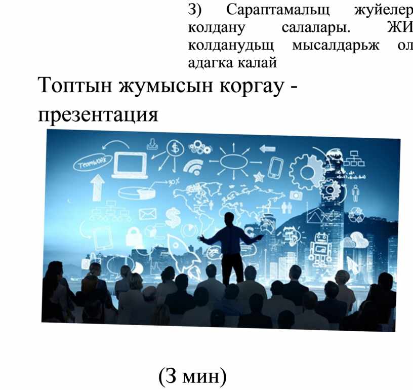 З) Сараптамальщ жуйелер колдану салалары. ЖИ колданудьщ мысалдарьж ол адагка калай