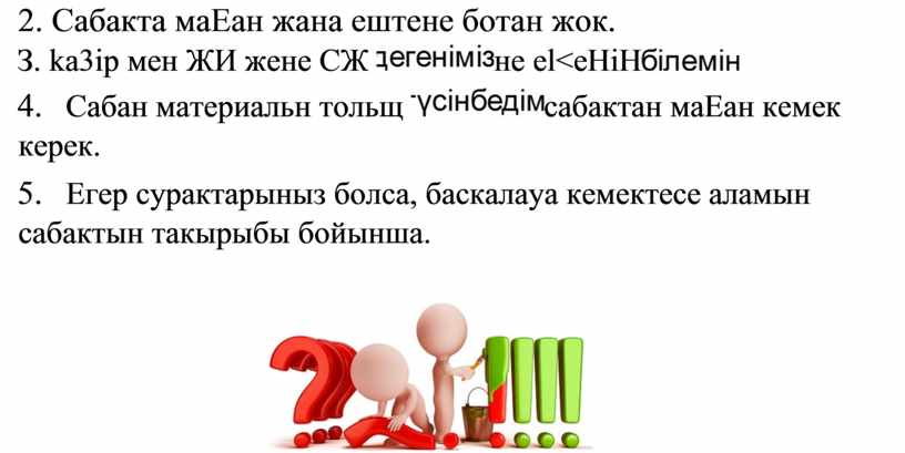5. Егер сурактарыныз болса, баскалауа кемектесе аламын сабактын такырыбы бойынша.
