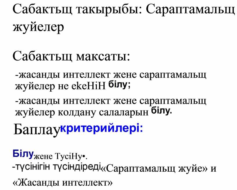 Сабактьщ такырыбы: Сараптамальщ жуйелер