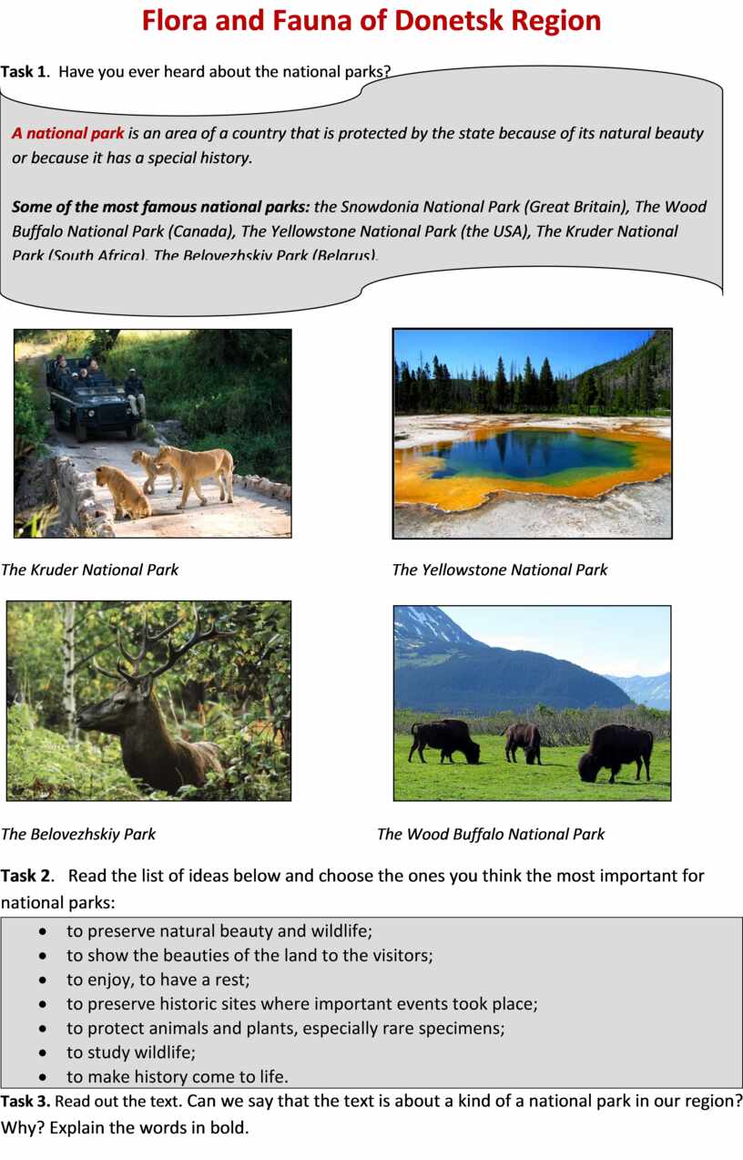 Task 2. Read the list of ideas below and choose the ones you think the most important for national parks: