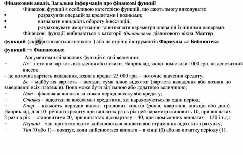 Фінансовий аналіз. Загальна інформація про фінансові функції