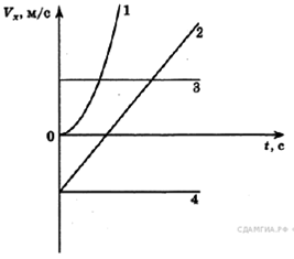 14. На рисунке представлен график зависимости проекции скорости Vx от времени t для четырёх