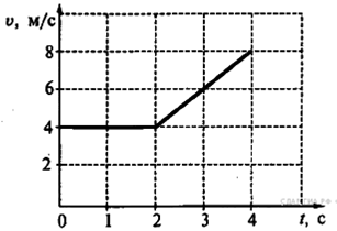 D) 0—2 с — равномерно; 2—4 с — равноускоренно с положительным ускорением