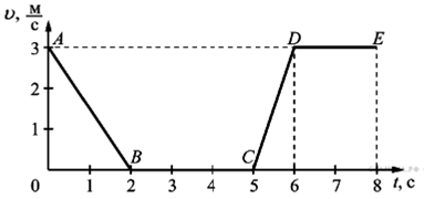 E) 0—2 с — покоится; 2—4 с — движется равномерно