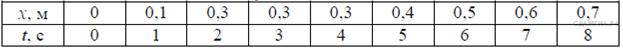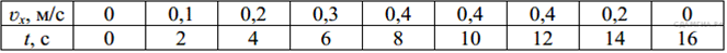 Тело движется вдоль оси OX. В таблице представлены значения проекции