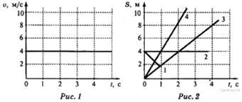 12. На рисунке 1 приведен график зависимости скорости движения тела от времени. Укажите соответствующий ему график зависимости пути от времени (рис. 2).