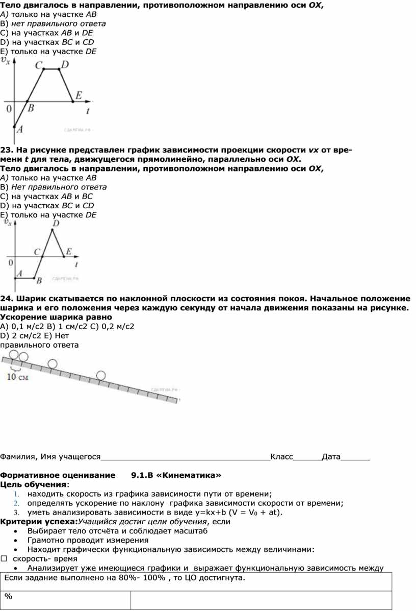 22. На рисунке представлен график зависимости проекции скорости vx от
