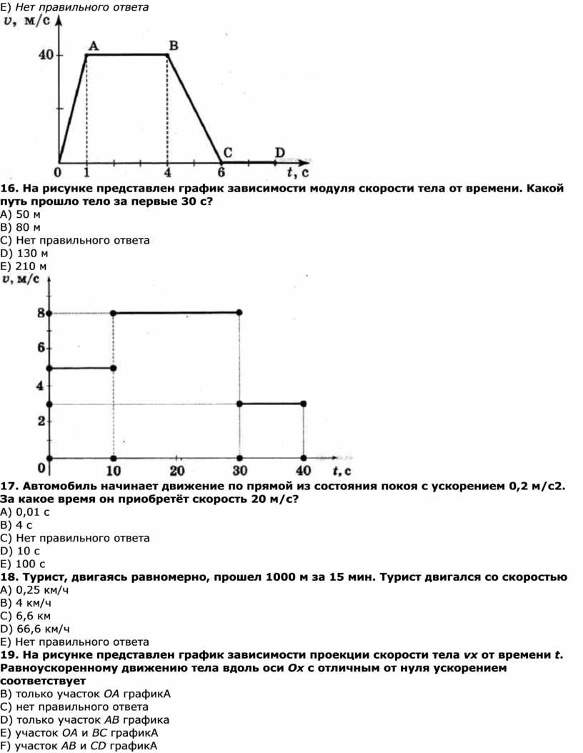 17. Автомобиль начинает движение по прямой из состояния покоя с ускорением 0,2 м/с2. За какое время он приобретёт скорость 20 м/с?