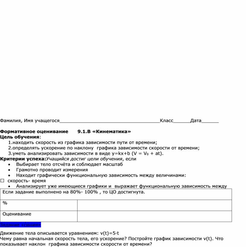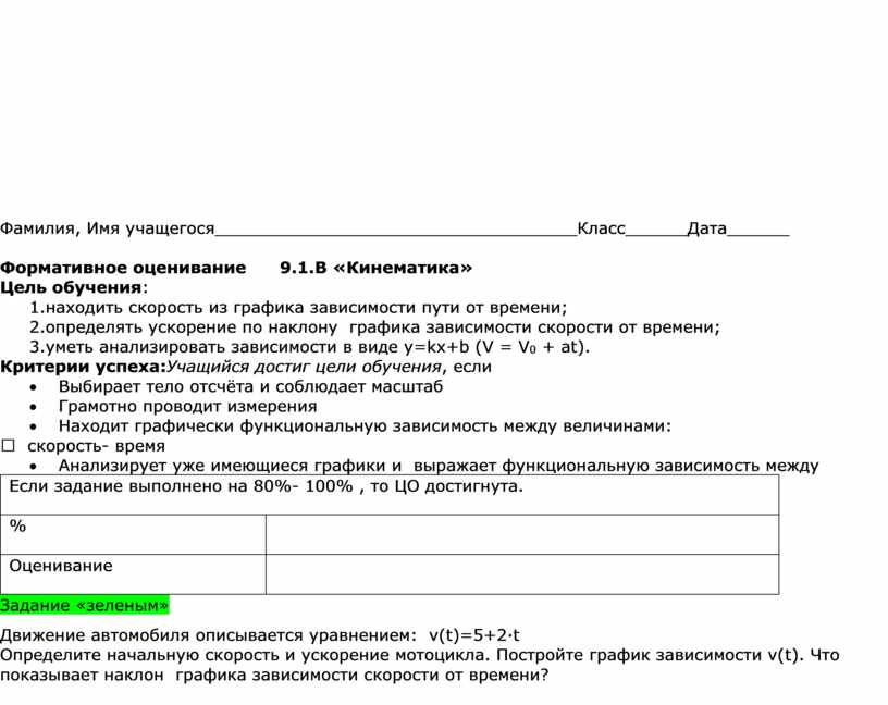3.уметь анализировать зависимости в виде y=kx+b (V = V0 + at).
