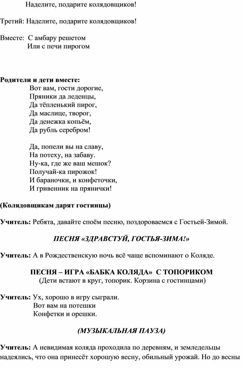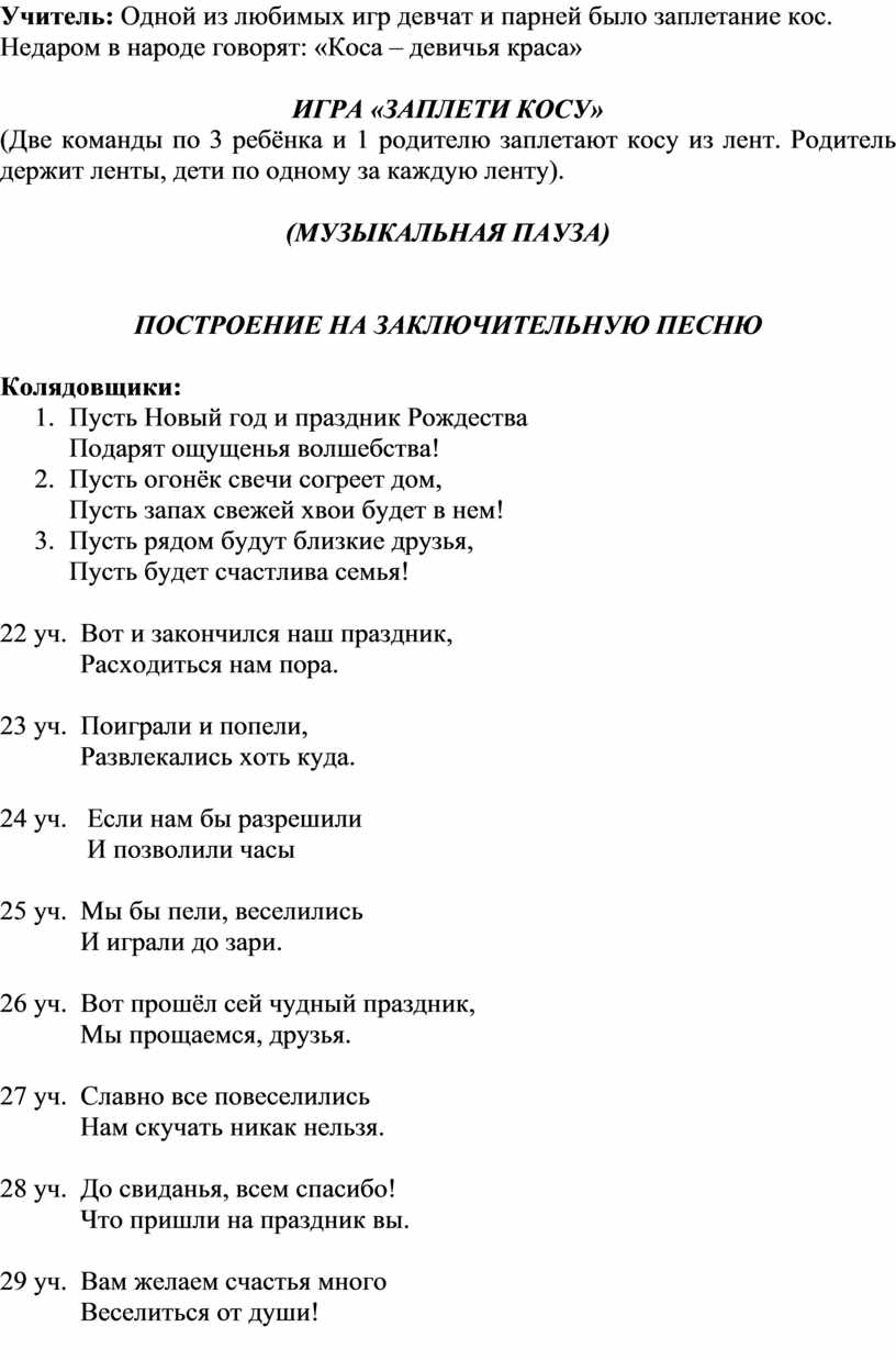Учитель: А на Руси традиционны рождественские гуляния. С песнями и плясками.