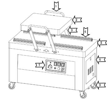 18. Станина, корпус машины, рабочая камера, рабочие органы, передаточный механизм.