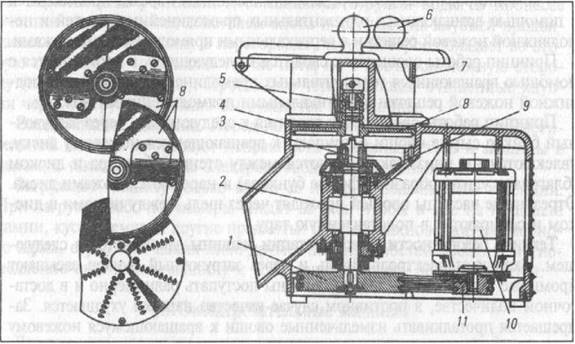 7. Универсальным приводом называется устройство состоящее из электродвигателя с редуктором и имеющее приспособление для переменного подсоединения различных сменных механизмов. Он состоит из электродвигателя с редуктором, на котором могут закрепляться и попеременно работать различные по назначению съемные механизмы: мясорубка, взбивалка, овощерезка, мясорыхлитель и другие сменные механизмы. Отсюда привод получил свое название - "универсальный".
