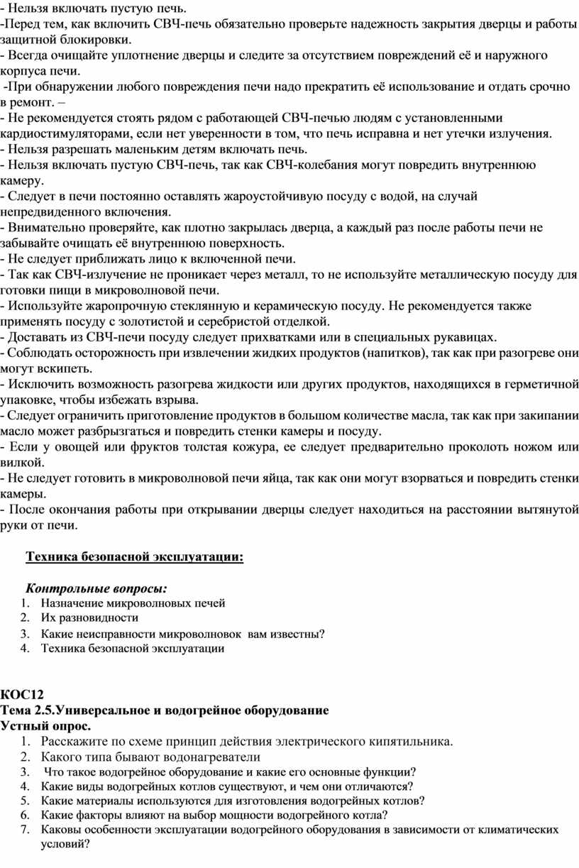 Тема 2.5. Универсальное и водогрейное оборудование |