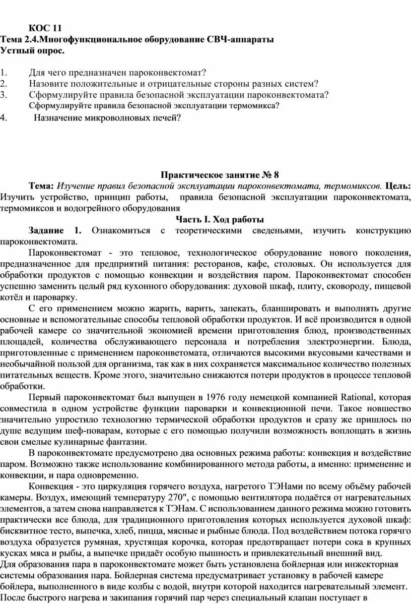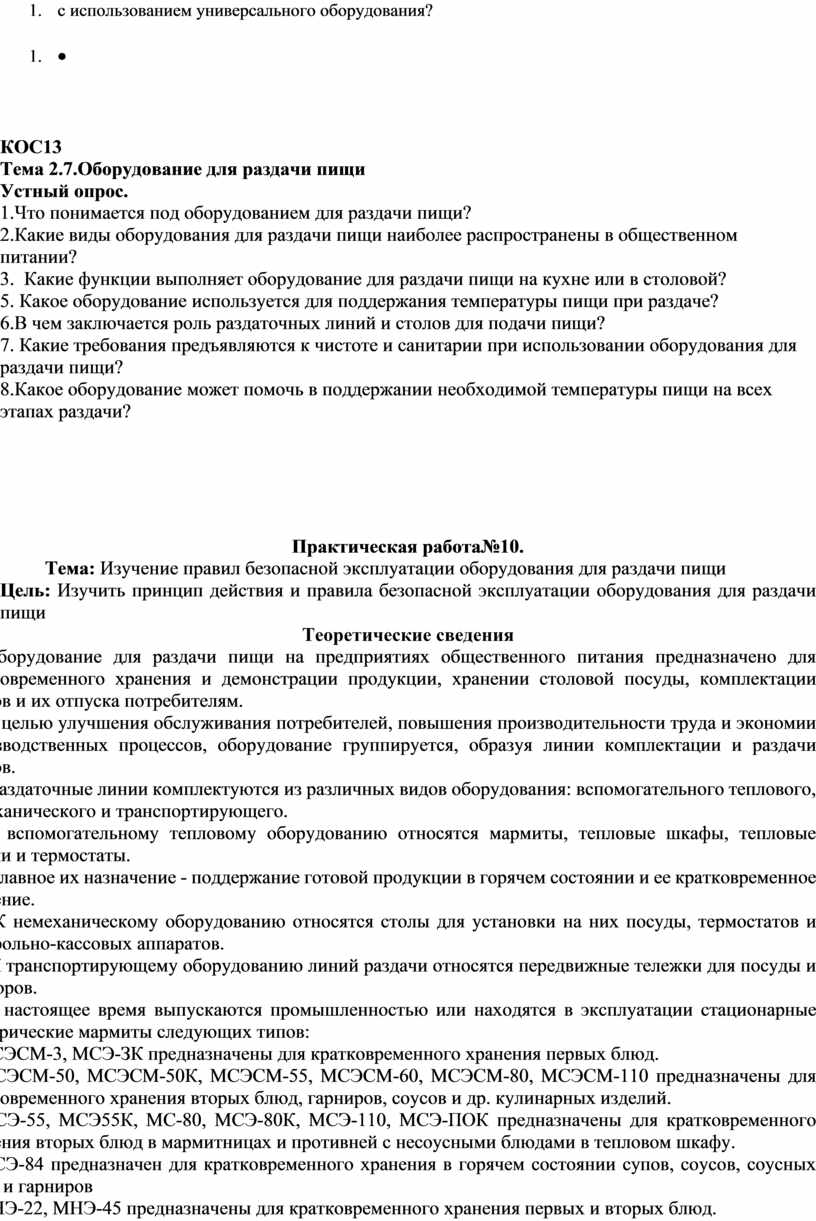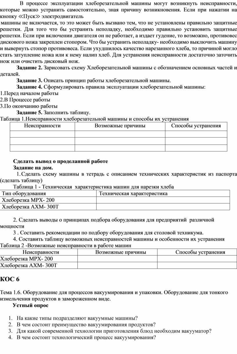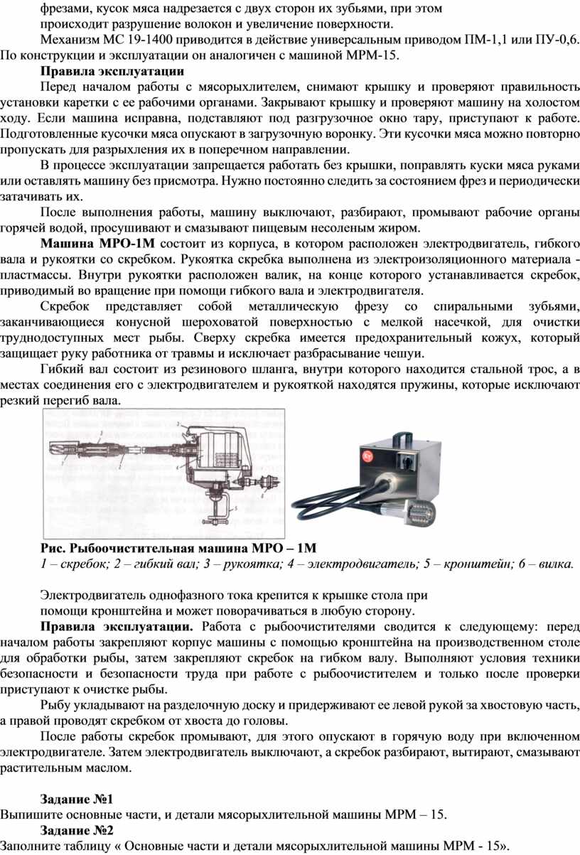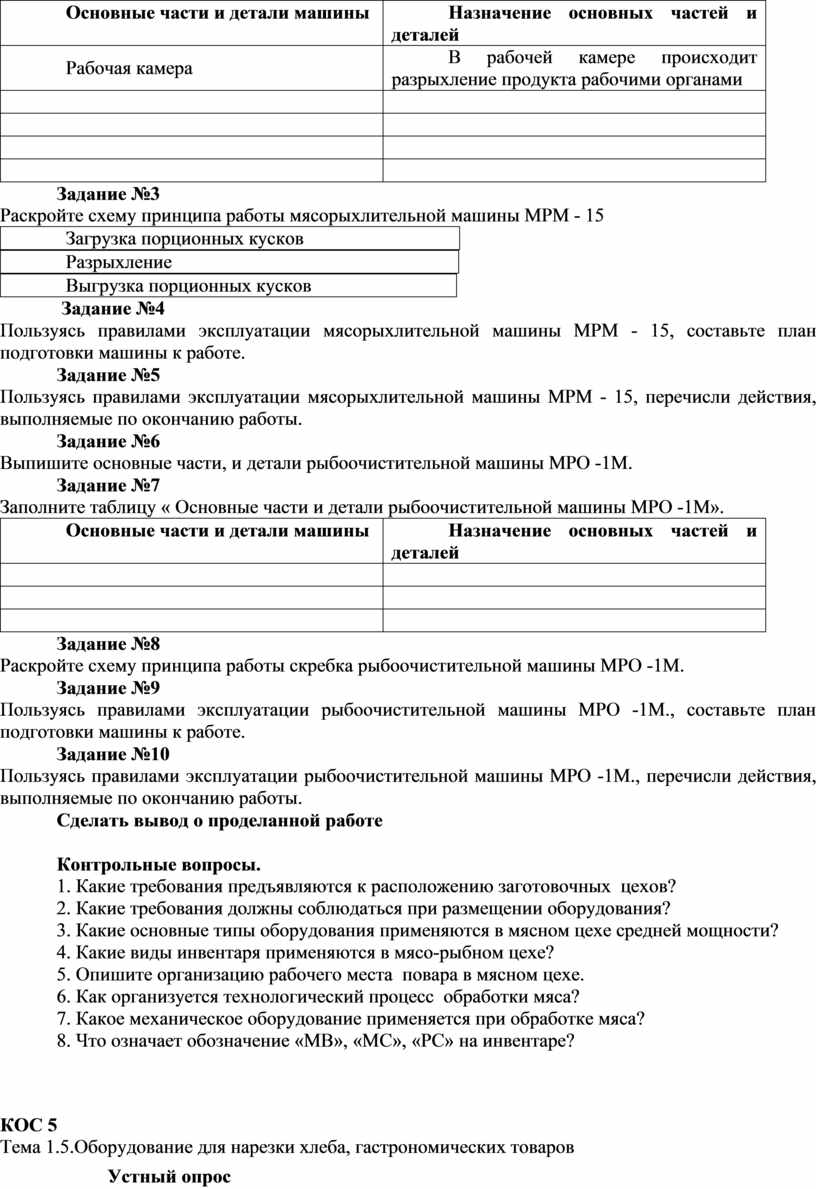 10.Перечислить виды холодильного оборудования. __________________________________________________________________________________________________________________________________________________11. Что является рабочим органом в машине РО-1М