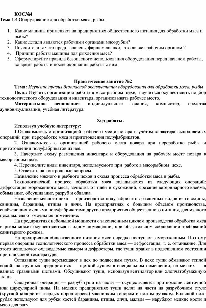 Тема 1.4. Оборудование для обработки мяса, рыбы |